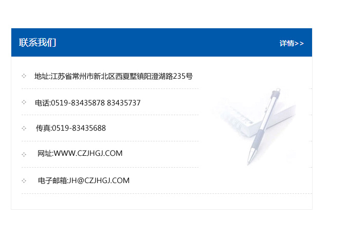 地址:常州市新北區友邦商務大廈1幢16、17層  電話:0519-85101652  傳真:0519-85112595  郵編:213022  網址:www_cz-jiayue_cn.bjhhgg.com  郵箱:xiajifengaa@163.com